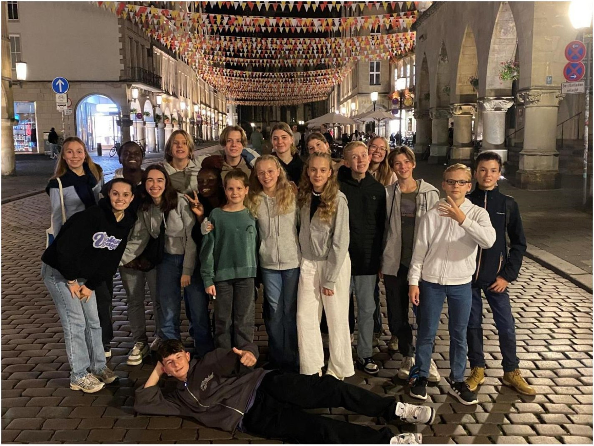 und sind direkt essen gegangen. Nach dem Essen haben wir unsere Schlüssel bekommen, unsere Zimmer bezogen und haben uns noch kurz getroffen, um das Wochenende zu planen. Gegen 22 Uhr sind wir im Dunkeln nach Münster in die Innenstadt rein und haben eine Nachtwanderung gemacht. |